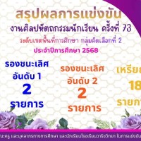 สรุปผลการแข่งขันงานศิลปหัตกรรมนักเรียนครั้งที่ 73 ระดับเขตพื้นที่การศึกษา กลุ่มคัดเลือกที่2 ประจำปีการศึกษา 2568