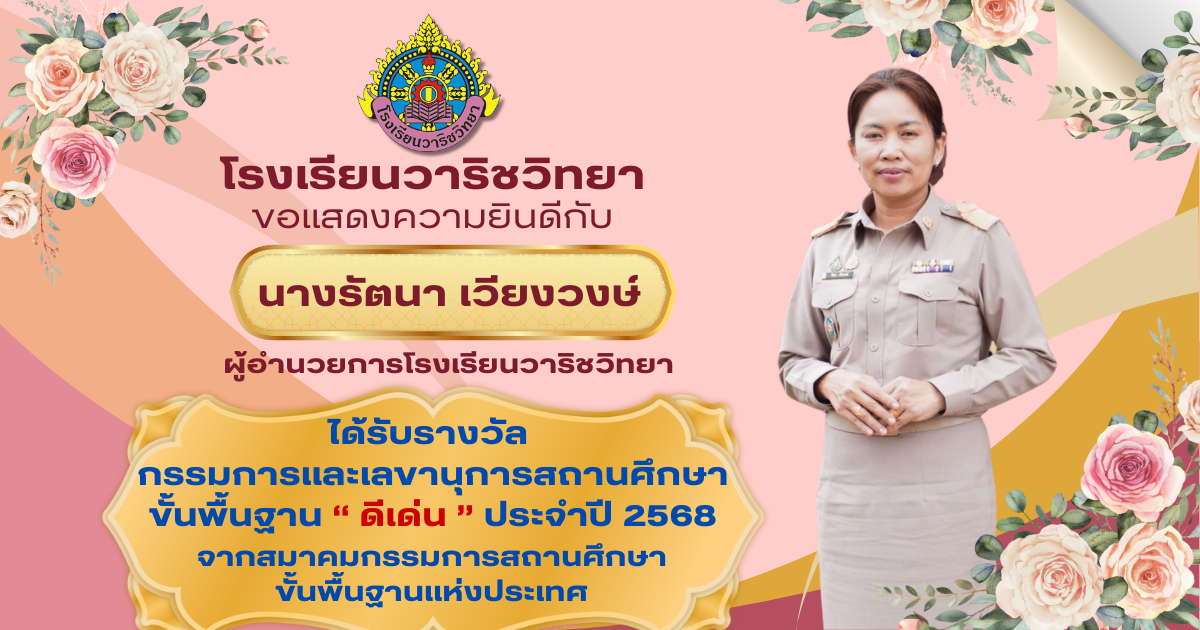 วันที่ 17 กรกฎาคม 2568 โรงเรียนวาริชวิทยา รับการตรวจเยี่ยมสถานศึกษา การประกันคุณภาพภายนอก ระดับการศึกษาขั้นพื้นฐาน (พ.ศ. ๒๕๖๗ - ๒๕๗๑) จากสำนักงานรับรองมาตรฐานและประเมินคุณภาพการศึกษา (องค์การมหาชน) โดยมี นายปราการ ช่วยรักษา ประธานกรรมการ พร้อมด้วยคณะกรรมก 21 ก.ค. 68